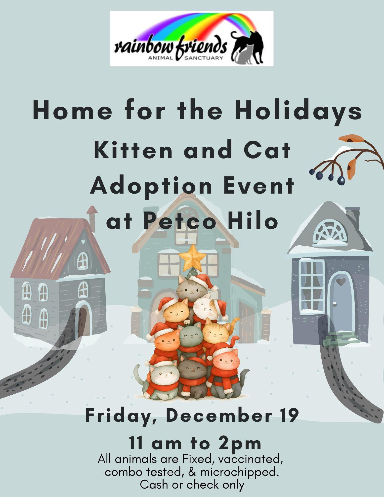 Rainbow Friends Animal Sanctuary is a 501(c)3 non profit organization dedicated to the well being of Hawaii’s unwanted, rejected, abandoned, abused or otherwise neglected animals, especially companion animals. Our services include rescuing, fostering, provision of food, medical care and safe sheltering of these creatures until they can be permanently placed into caring and responsible homes. Some animals may live out their lives at the Sanctuary, or foster locations, or be returned to their human companions. We are currently at capacity in the Sanctuary. Rainbow Friends appreciates your continued contributions to our 50 dogs and over 200 cats, as we continue the work to find them placement in loving homes. We are unable to accept any new animals at this time. Mahalo for your understanding and support.